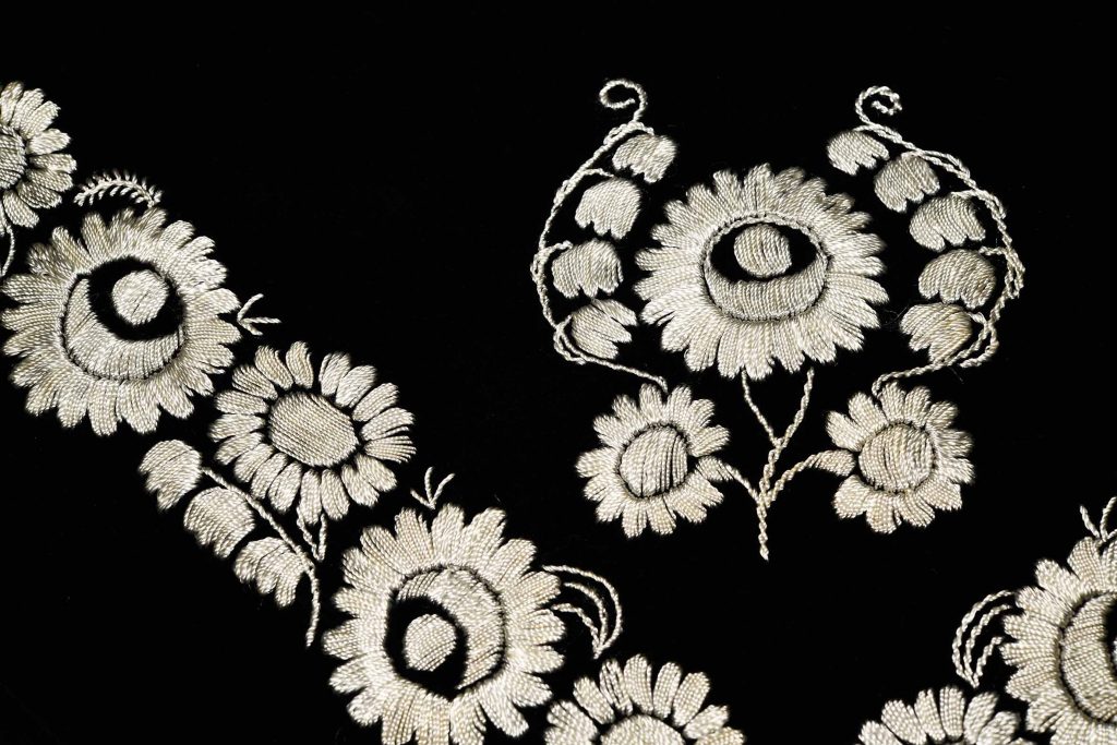 Opäť som mala možnosť nahliadnuť do archívu v NMG v Lučenci a ako inak objavila som tam znovu úžasné kúsky. Inšpiráciou pri tvorbe kolekcie „ROZKVITNUTÁ ÁBELOVÁ“ sa stal práve tradičný kroj a nádherné kvetinové výšivky z dedinky Ábelová, ktoré sú typické pre danú oblasť regiónu Novohrad. Kolekcia nadväzuje na geometricky ladené vzory z predošlej kolekcie inšpirovanej výšivkami zo zaniknutých obcí Lešť a Turie Pole – „Stratený Novohrad“ a obe kolekcie ste mali možnosť vidieť počas výstavy „STRATENÝ NOVOHRAD“, ktorá sa uskutočnila v priestoroch NMG v Lučenci od 5.5.2022 – 7.8.2022.