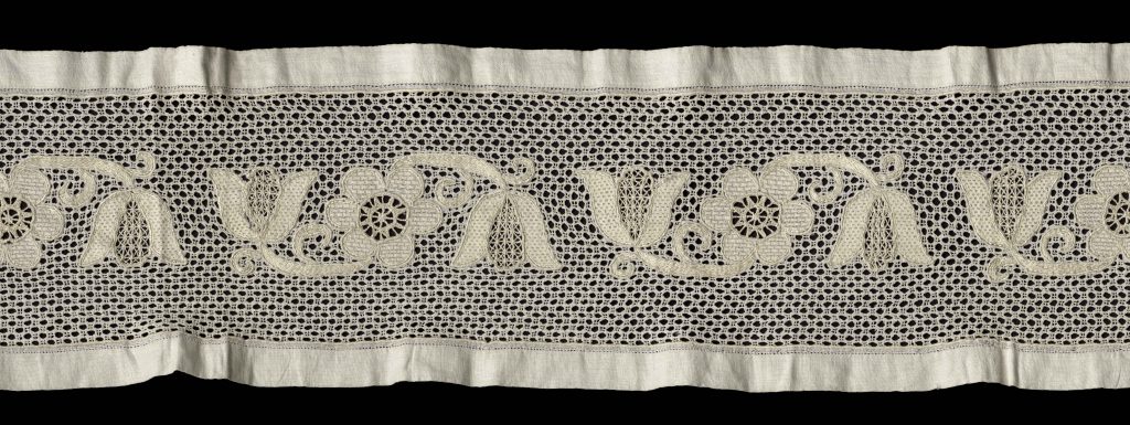 - Prelamované výšivky – výplň vzorov sieťou. Jedná sa o ozdobný princíp spočívajúci vo vytváraní ornamentu rozrušením podkladu. Táto technika pripomína čipku vďaka svojej priehľadnej sieti, ale vzniká vytiahnutím alebo vystrihnutím častí nití podkladovej látky v dvoch smeroch (vertikálne / horizontálne). Obšitím nitiek vznikajú priehľadné očká, ktoré sa šachovnicovo striedajú s nepriehľadnými.